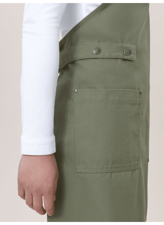 Unisex;Adjustable neck strap;Detachable neck strap and waistband;Two pockets;For both service and kitchen employees;Subtle branded details (studs with H). Heavy weight fabric;Strong material. No stretch. Sturdy. Suitable for industrial laundry;Easy care