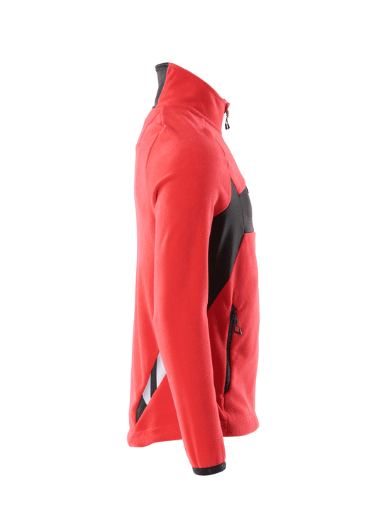 Moderne, meer aansluitende pasvorm met een optimale bewegingsvrijheid. Sluiting met rits en inwendige windvanger. Borstzak met rits. Voorzakken met rits. Elastiekband bij de pols. Reflectie-effecten.