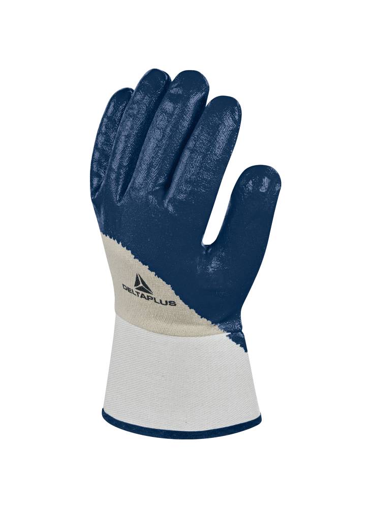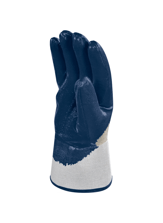 Nitril op drager van jersey katoen. Manchet 6 cm. Geventileerde rug.