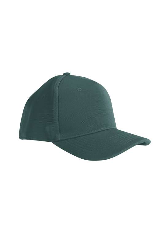 Functionele pet met ventilatieopeningen en zweetband van 100% katoen.; Groot deel gerecycled polyester in het hoofdmateriaal.