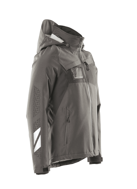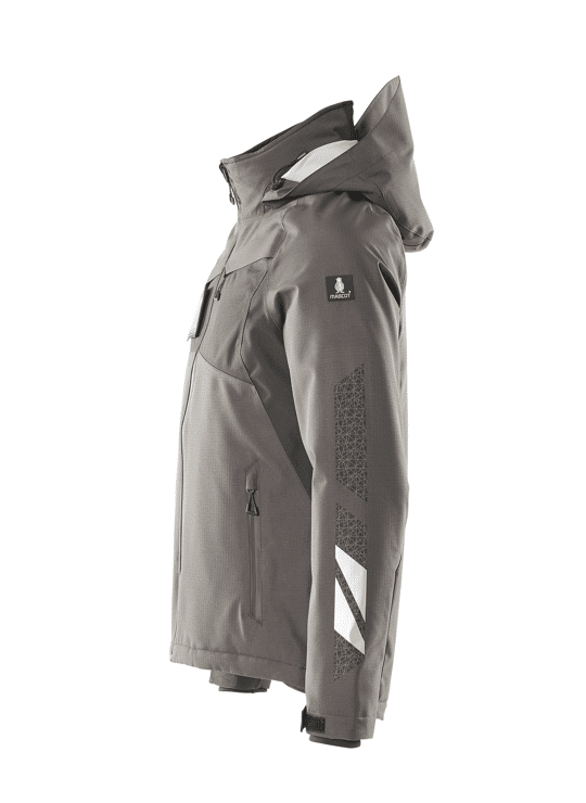 Ademend, wind- en waterdicht. Getapede naden. Met CLIMASCOT® Lightweight Insulation. Afneembare gevoerde capuchon met verstelbaar elastisch rijgsnoer. Sluiting met rits en inwendige windvanger. Binnenzak met rits. Afneembare ID-kaarthouder. Borstzak met rits. Voorzakken met rits. Elastisch rijgsnoer, aan de onderkant verstelbaar. Mouwen versterkt met CORDURA®. Tricot (verborgen in windvanger) bij de pols. Rits onderaan de rug voor bedrukking/borduursel. Met opdruk en reflectoren.